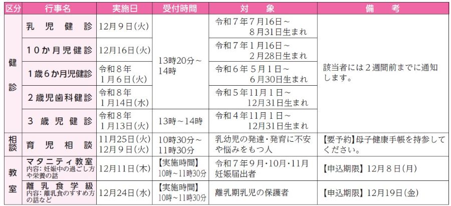 ■乳幼児の健診・相談など