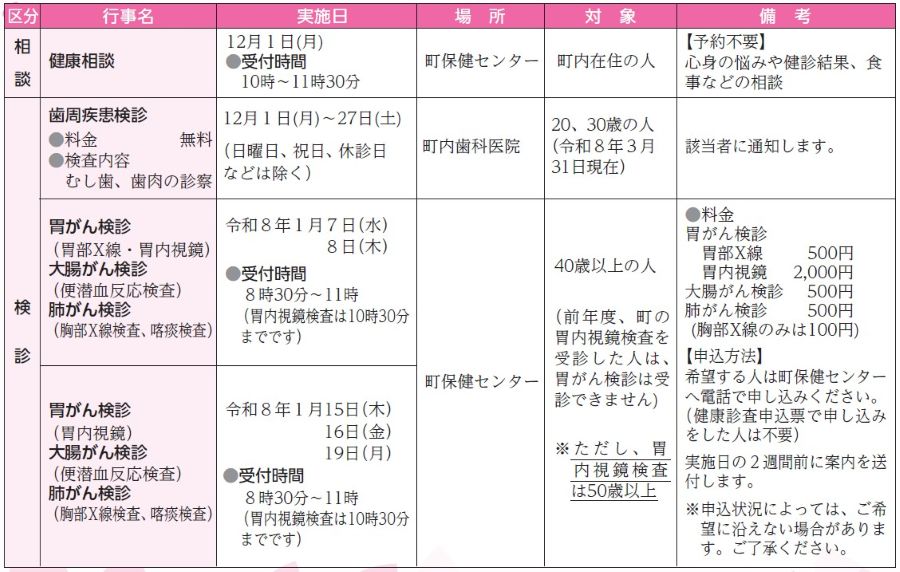 申し込み・問い合わせ:町保健センター