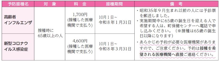 ※定期予防接種対象者以外の人は、任意接種となり、全額自己負担です。接種料金などは接種を希望する医療機関へおたずねください。