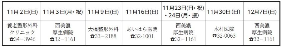 ■休日診療医療機関(11月2日~12月7日)