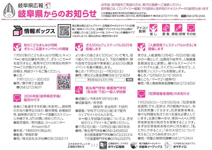くらし 岐阜県からのお知らせ 45/55 前の記事 次の記事 発行日 : 2025年11月01日 自治体名 : 岐阜県養老町 広報紙名 : 広報養老 2025年11月号 Tweet シェアする 地域包括支援センターからのお知らせ 養老公園からのお知らせ