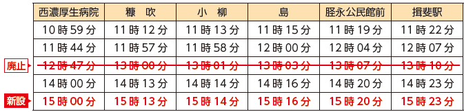 (1)12時47分「西濃厚生病院」発「揖斐駅」行きを廃止する。