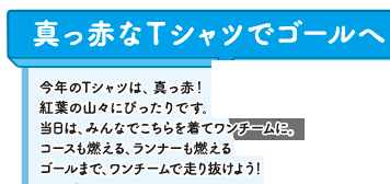 赤いTシャツをみんなで着用しようと呼びかけています!コース全体が艶やかな色に染まります、お楽しみに。