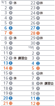 ・土曜日 9:00~12:00 18:00~21:00