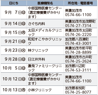 ※当番医療機関は変更される場合がありますので、確認の上お出掛けください。