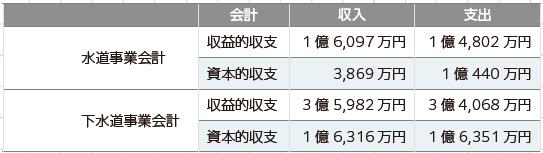 公営企業会計として、水道事業会計と下水道事業会計があります。
