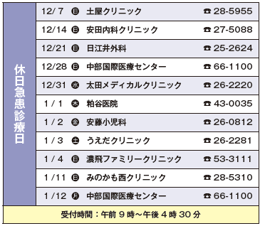 健康 休日急患診療日・休日急患歯科診療日 20/21 前の記事 次の記事 発行日 : 2025年12月04日 自治体名 : 岐阜県川辺町 広報紙名 : 広報かわべ 2025年12月号 ※休日急患診療所・休日歯科当番医は変更になる場合がありますので、事前にお電話などでご確認のうえおでかけください。 Tweet シェアする 川辺にぎわい商品券の使用期限について その他のお知らせ(広報かわべ 2025年12月号)