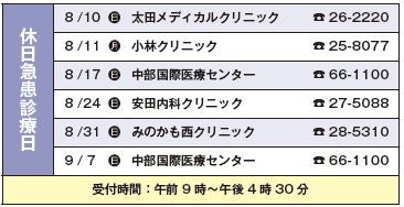 健康 休日急患診療日・休日急患歯科診療日 21/22 前の記事 次の記事 発行日 : 2025年08月07日 自治体名 : 岐阜県川辺町 広報紙名 : 広報かわべ 2025年8月号 ※休日急患診療所・休日歯科当番医は変更になる場合がありますので、事前にお電話などでご確認のうえおでかけください。 Tweet シェアする 「かわべ子育てきずなLINE」がスタート! その他のお知らせ(広報かわべ 2025年8月号)