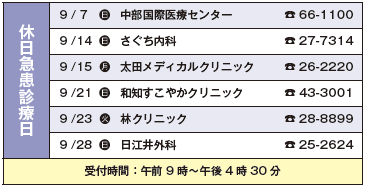 健康 休日急患診療日・休日急患歯科診療日 21/22 前の記事 次の記事 発行日 : 2025年09月04日 自治体名 : 岐阜県川辺町 広報紙名 : 広報かわべ 2025年9月号 ※休日急患診療所・休日歯科当番医は変更になる場合がありますので、事前にお電話などでご確認のうえおでかけください。 Tweet シェアする 川辺町公式LINE 友だち募集中! その他のお知らせ(広報かわべ 2025年9月号)
