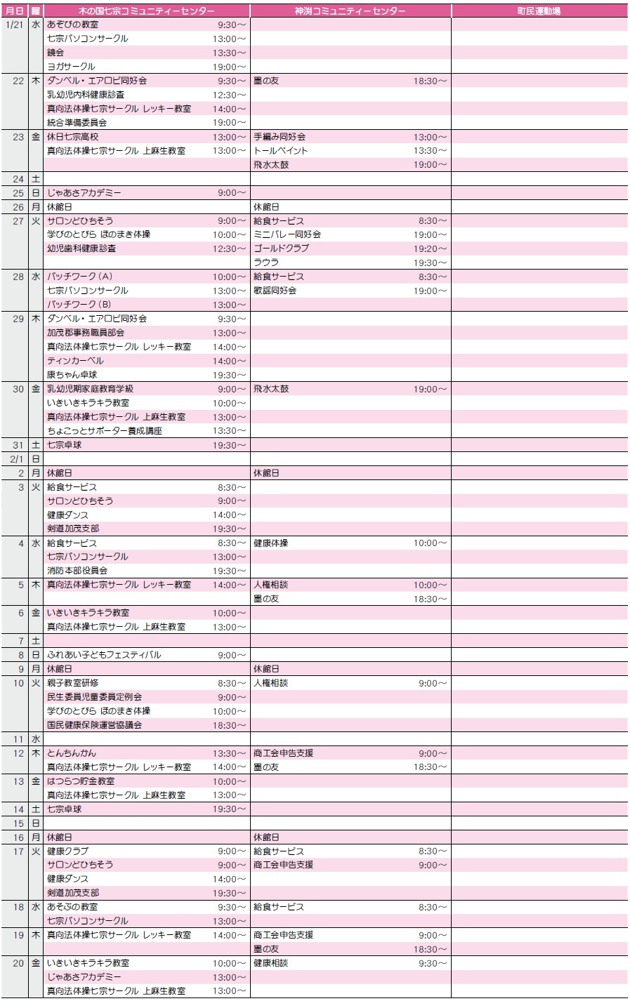 講座 コミュニティーセンター等 施設行事予定表 22/25 前の記事 次の記事 発行日 : 2026年01月20日 自治体名 : 岐阜県七宗町 広報紙名 : 広報ひちそう 令和8年1月号 ※1月6日受付分まで Tweet シェアする 岐阜県からのお知らせ 〔今年度最後!〕ほっと七福カフェ