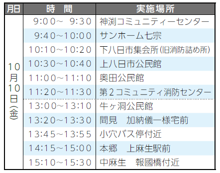 ・午後2時~4時まで…神渕コミュニティーセンター前