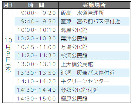 ・午前9時45分~正午まで…七宗町役場西側駐車場