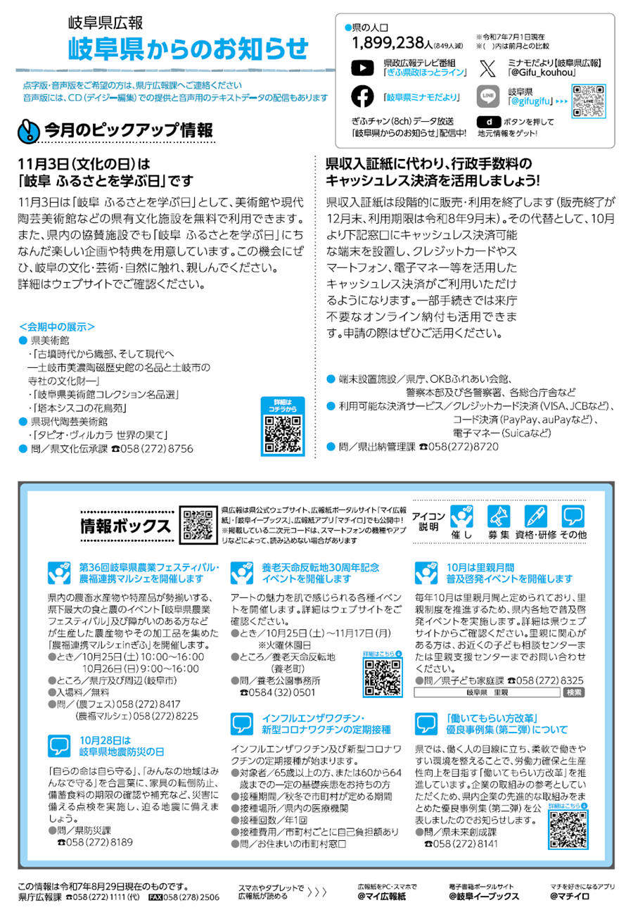 イベント 岐阜県からのお知らせ 15/20 前の記事 次の記事 発行日 : 2025年09月22日 自治体名 : 岐阜県七宗町 広報紙名 : 広報ひちそう 令和7年9月号 Tweet シェアする しゃくなげ 第582号ー七宗町教育委員会だよりー コミュニティーセンター等 施設行事予定表