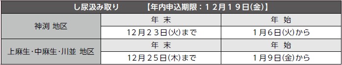 毎年12月から1月にかけて可燃ごみ及びし尿の搬入量が増え、処理場の受け入れ容量を超えています。そのため各集積場で回収できず未集積箇所が生じることがありますので、ごみの減量化にご協力ください。
