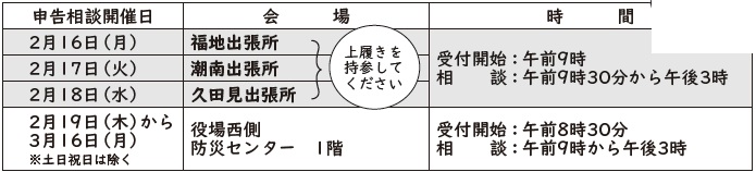 ・出張所において申告相談を受けられる場合、上履きをご持参ください。