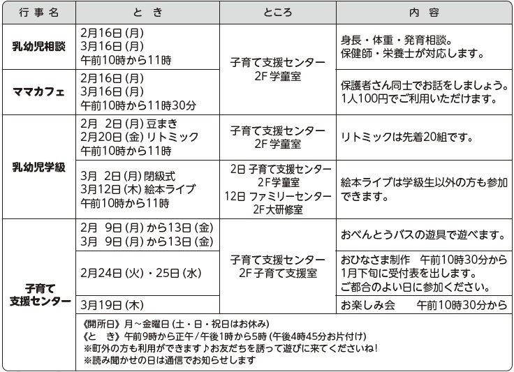 教育課(乳幼児学級)【電話】43‒2111(内線2518)