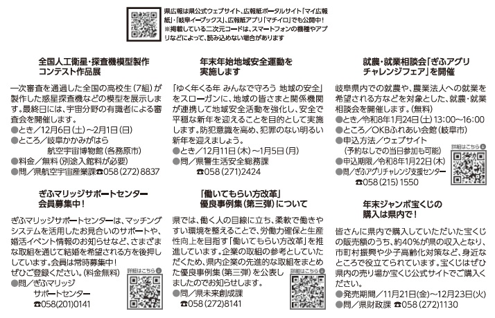 くらし 情報ボックス 15/30 前の記事 次の記事 発行日 : 2025年11月20日 自治体名 : 岐阜県八百津町 広報紙名 : 広報やおつ 令和7年11月号 Tweet シェアする 岐阜県からのお知らせ No.148 シリーズ 教育の窓 つながり 広がる みんなでつくる 錦津小 錦津小学校