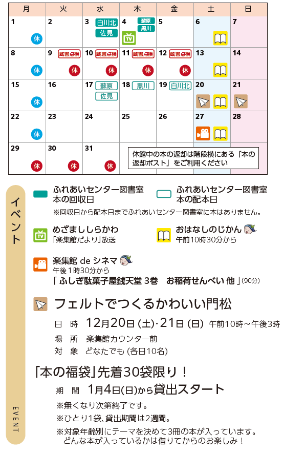 下記の予定等は、状況により変更することがあります。すぐメール・ホームページなどでご確認下さい。