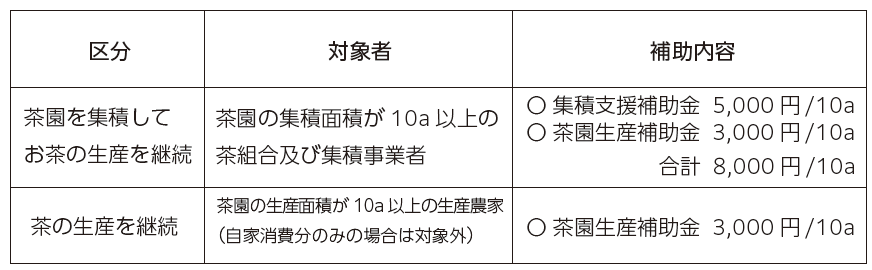 ※補助金の対象茶園は当初申請の翌年度から5年間生産を継続する意思があること。
