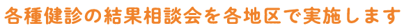9月に実施した特定、おたっしゃ、30歳代健診の結果の返却と個別相談を行います。ご都合のよい会場にお越しください。詳細は、健診当日に配布したチラシをご確認ください。
