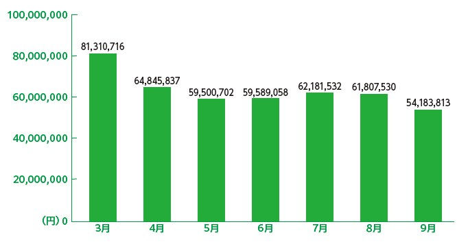 半年間の利用総額(現金支払・電子マネー支払・ポイント利用の合算金額)