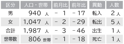 その他 村の人口の動き 16/21 前の記事 次の記事 発行日 : 2025年09月12日 自治体名 : 岐阜県東白川村 広報紙名 : 広報ひがししらかわ 2025年(令和7年)9月号 No.174 (8月末の住民登録人口) Tweet シェアする 東白川村森林組合 共販会 10月ごみ収集情報