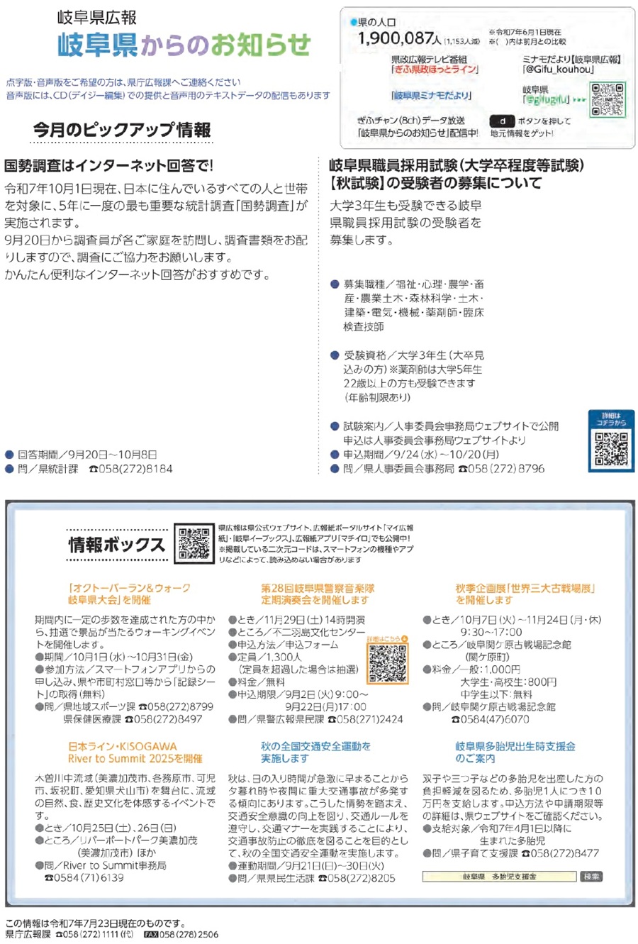 くらし 岐阜県広報 岐阜県からのお知らせ 18/21 前の記事 次の記事 発行日 : 2025年09月12日 自治体名 : 岐阜県東白川村 広報紙名 : 広報ひがししらかわ 2025年(令和7年)9月号 No.174 Tweet シェアする 10月ごみ収集情報 ~ほっとアングル~
