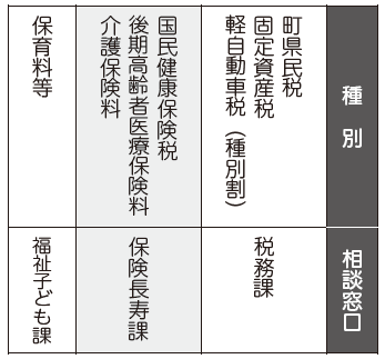 災害、病気、失業や事業の経営不振など、やむを得ない理由で一時的に町税などを納期限内に納付することが困難な人については、収支や生活状況などをお聞きしたうえで、納税相談に応じています。