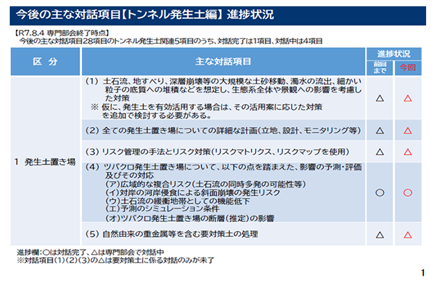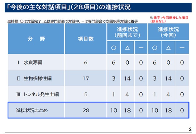 各処理方法について説明があり、課題も共有できたことで対話には一定の進捗が見られた。次回以降の専門部会で引き続き対話を進め、静岡工区における最も適切な処理方法を決定していくことを確認した。