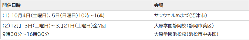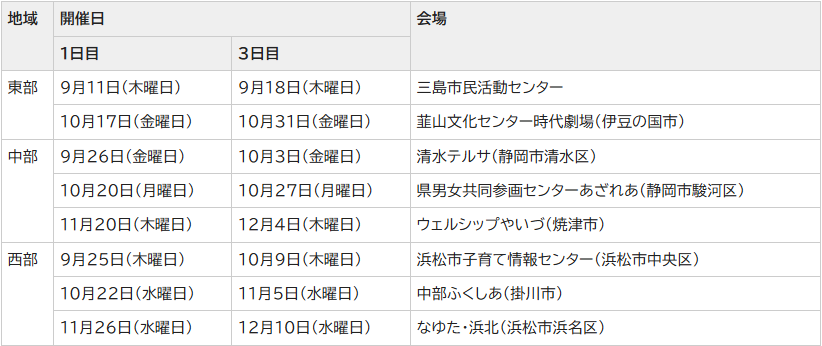 受付:各開催日前日(託児が必要な場合は10日前)まで