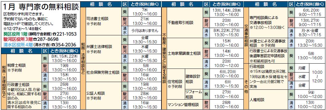 くらし 1月専門家の無料相談 64/70 前の記事 次の記事 発行日 : 2026年01月01日 自治体名 : 静岡県静岡市 広報紙名 : 広報しずおか『静岡気分』 令和8年1月号 消費生活・多重債務についての相談は、生活安全安心課消費生活センター相談窓口へどうぞ(静岡庁舎新館1階/清水庁舎4階) 【電話】221-1056【FAX】221-1291 ※平日9:00~16:00 Tweet シェアする SHIZUOKA KEIRIN 本場開催 1月健康・生活に関する無料相談