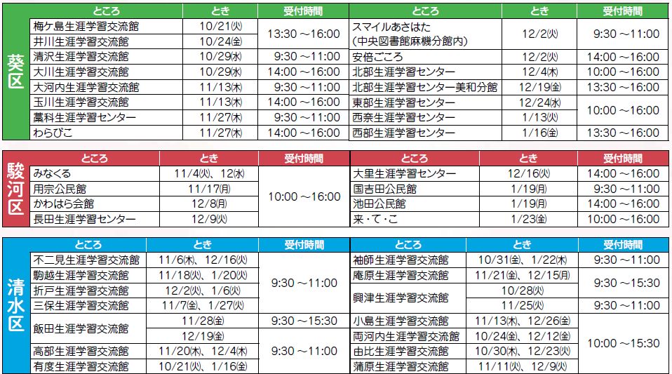 葵・駿河区…市民自治推進課(静岡庁舎15階)【電話】221-1439