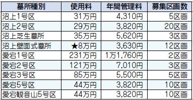 ※沼上2号区以外の墓所は、返還墓所の再募集です。