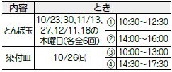 申込み:HP・電話(駿府匠宿(1)(2)【電話】204-5242(3)(4)【電話】204-5243)[10/1(水)~・申込順]