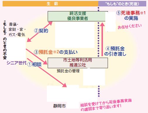 ※2預託金は、死後事務を実施するために必要な経費です。あらかじめ、市土地等利活用推進公社がお預かりし、相談者が亡くなった後、事業者に引き渡します。
