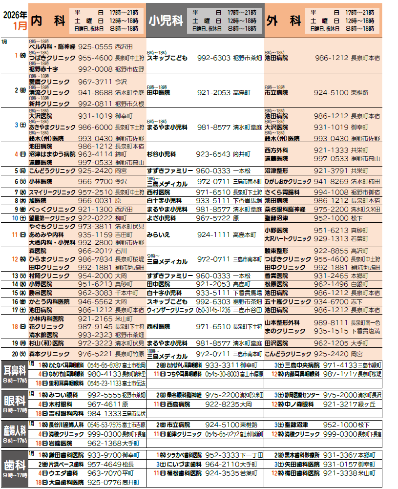 問合せ:沼津夜間救急医療センター