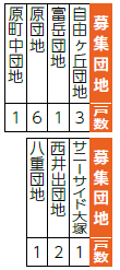 ※60歳以上または障害者手帳を持っていること等に該当する単身者は、自由ヶ丘団地(2戸)、富岳団地、原団地(2戸)、サニーサイド大塚のみ申し込むことができます。