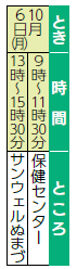 日時:10月19日(日)、13時30分~16時(受付は13時~15時30分)