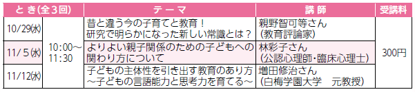 ■講座教室 家庭教育講座 自信がもてる子育て講座(秋期)