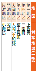 次の各地域の一部で公共下水道が使用できるようになりますので、対象地域の皆さんは、早期の接続をお願いします。