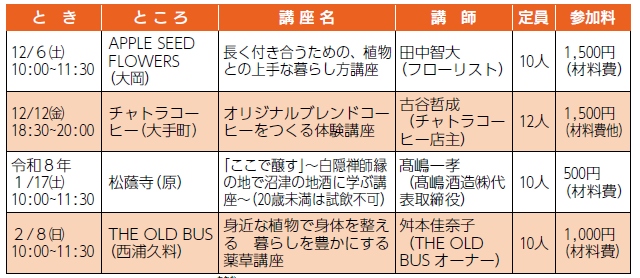 沼津市青年教養講座12月~令和8年2月開講講座の受講生を募集します。同世代の人たちと交流しながら学びませんか。