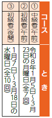 (1)11月22日(土)、12月20日(土)、令和8年2月28日(土)、3月20日(祝)