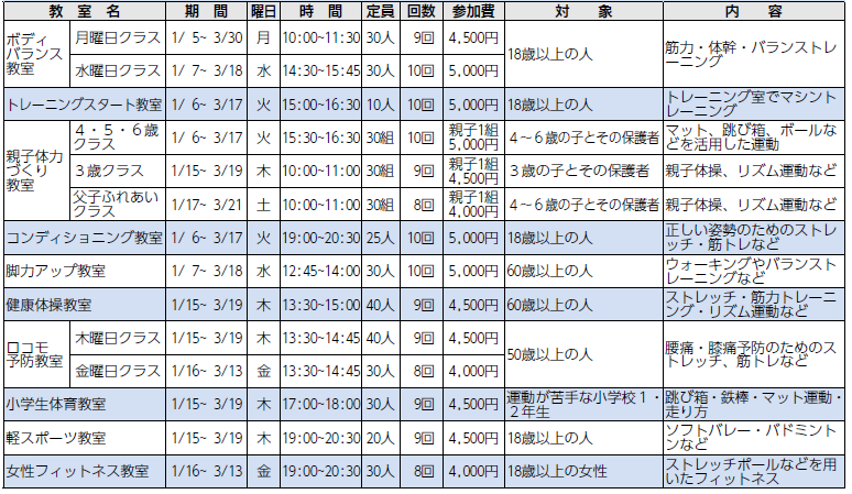 ※親子体力づくり教室以外は、未就学児を連れての参加はできません。