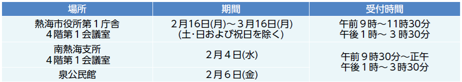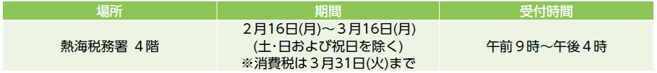 ◇南熱海支所・泉公民館での申告受付は1回のみとなります。