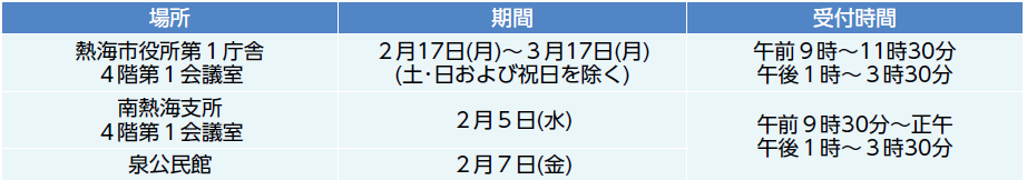 ・南熱海支所・泉公民館での申告受付は1回のみとなります。