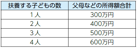 (6)令和6年中の父母(または家計支持者)の所得合計が、下記基準所得額以下であること