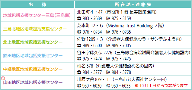 より身近な地域で充実した相談支援、地域づくりが行なえるよう10月1日に『山田地区地域包括支援センター』を開設し、地域包括支援センターが市内6カ所となります。