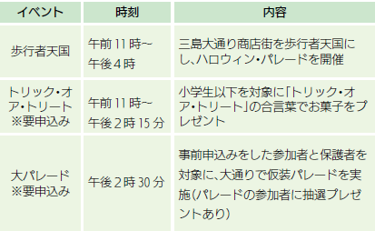 なお、イベントの「トリック・オア・トリート」、「大パレード」への参加は事前申込みが必要です。