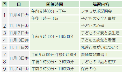 申込み・問合せ:10月20日(月)までにファミリー・サポート・センター事務局