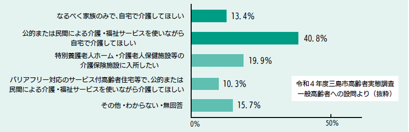 令和4年度に行った高齢者実態調査では、5割を超える人が「自宅で介護を受けたい」と回答しました。